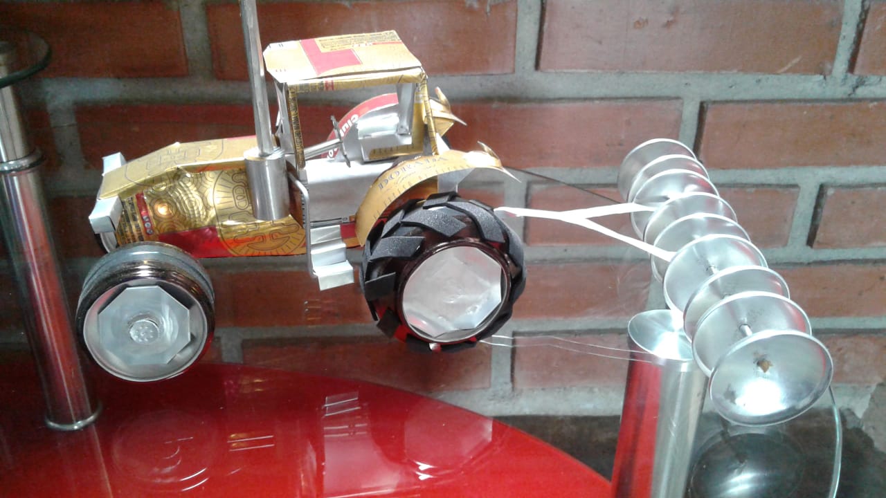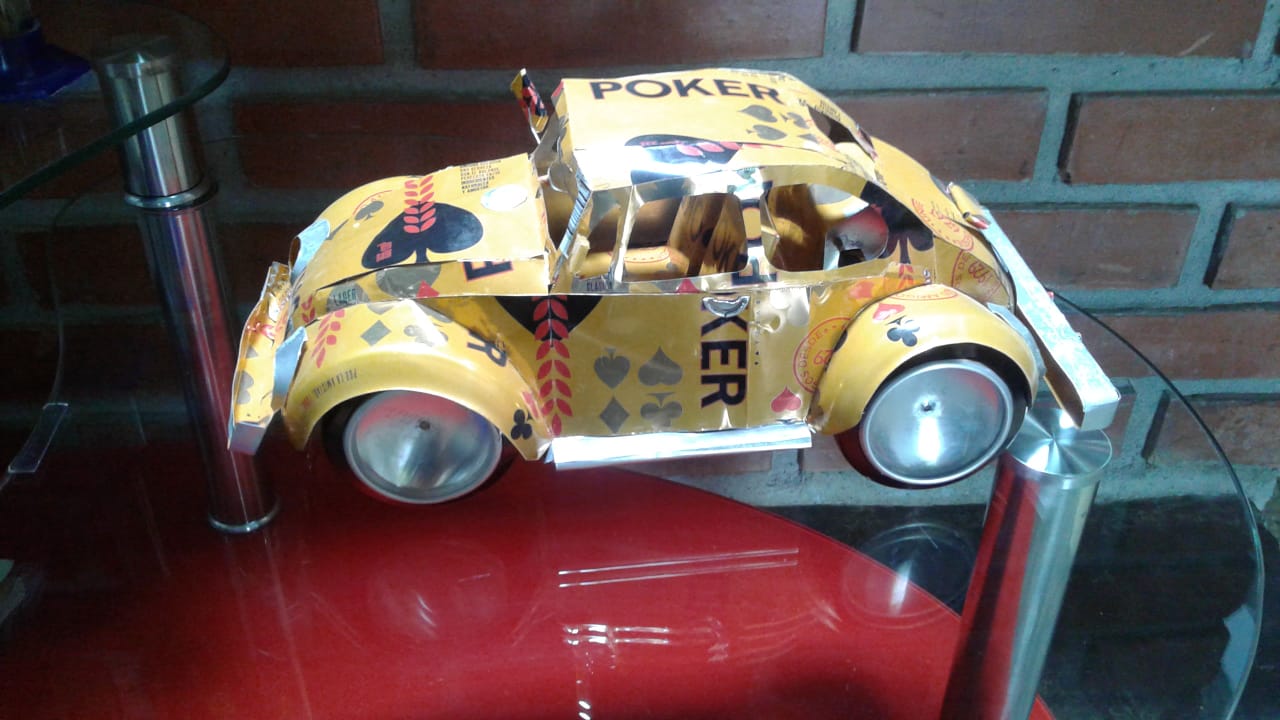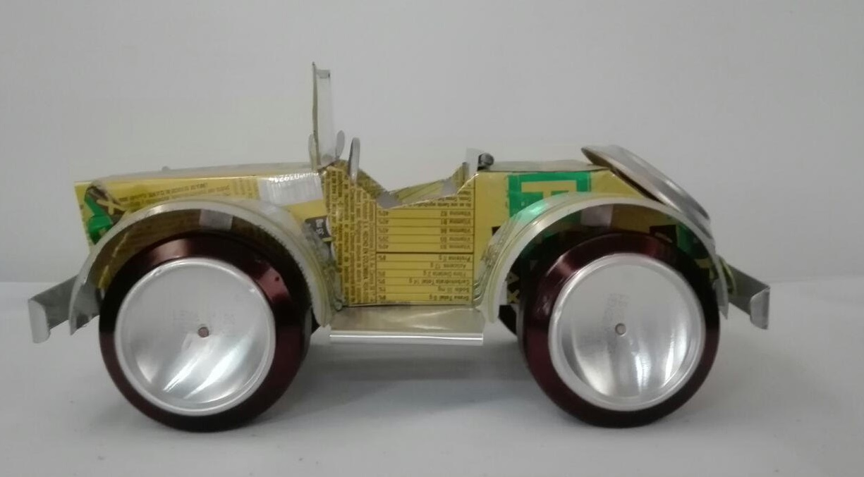 Carro de Carreras, fabricado con latas de aluminio reciclado,