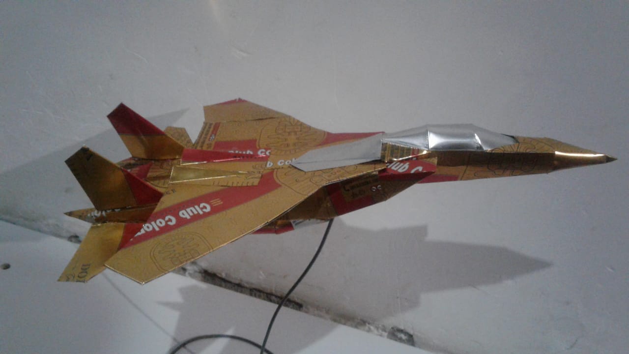 Avión de Combate, fabricado con latas de aluminio reciclado,