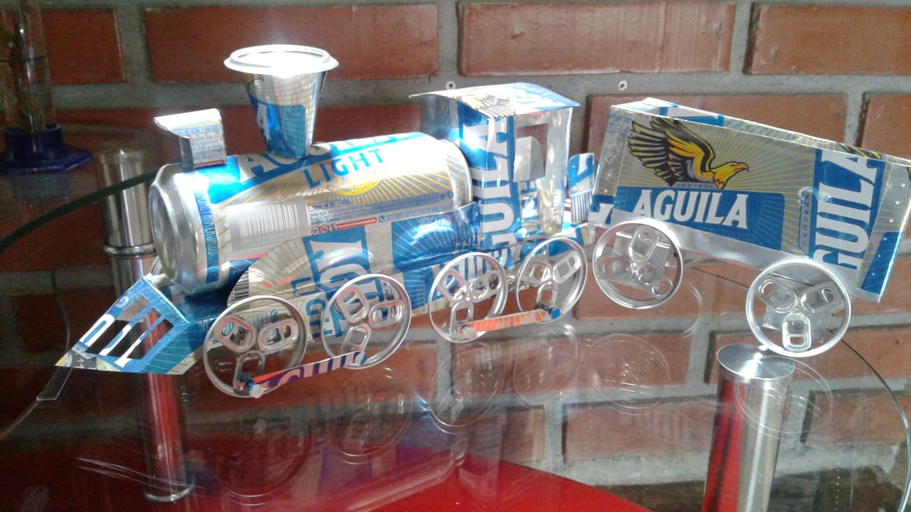 Motocicleta, fabricado con latas de aluminio reciclado,